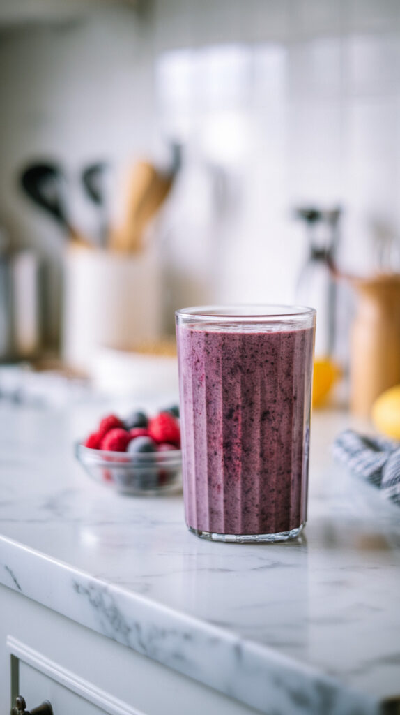 It tastes like a berry milkshake but still feels light and clean. The banana keeps it naturally sweet without needing much added sugar.