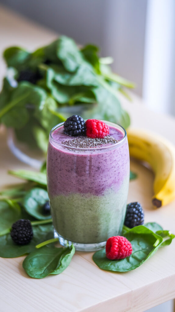 This one is for those days when you want something healthy but you don’t want it to taste like lawn clippings. Spinach gets such a bad reputation, but in a berry smoothie it basically disappears. The berries cover everything, and the banana keeps it sweet enough that you don’t even notice you’re drinking vegetables.