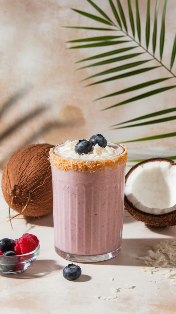 4. Mixed Berry Coconut Smoothie (Tropical Twist)