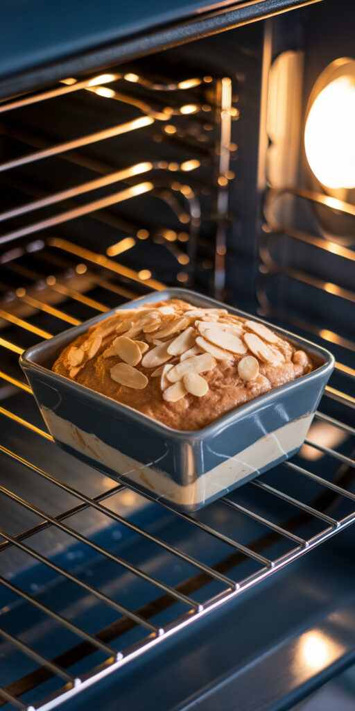 - Pour the batter into the prepared baking dish and spread it evenly with a spatula. Sprinkle sliced almonds over the top if you want a little texture.