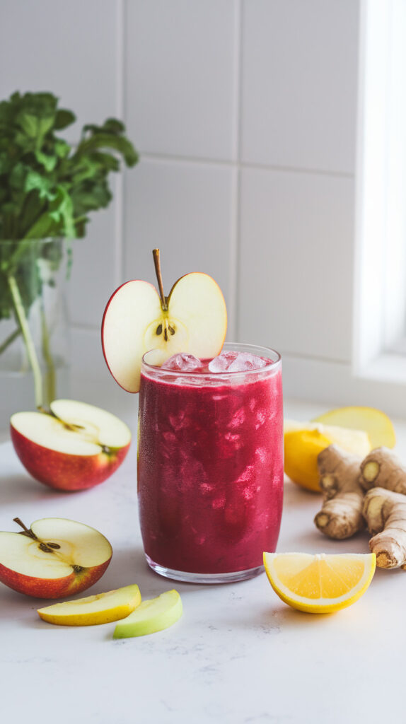 Apple and ginger are the secret weapons when beetroot starts tasting a little too… beetroot-y. This smoothie has that crisp, clean flavor that feels refreshing instead of heavy. The apple brings natural sweetness, while ginger adds a spicy kick that makes it taste bright and alive.