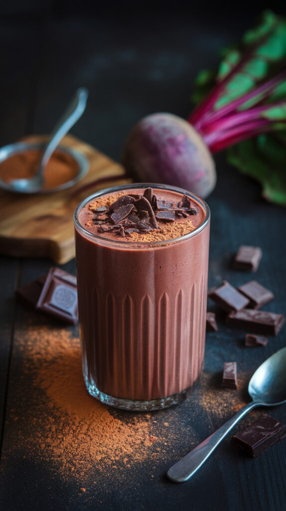 It tastes like chocolate dessert but still gives you real nutrients. The beetroot adds richness without making the smoothie taste earthy.