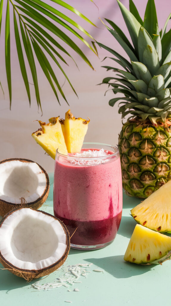 Coconut milk adds a creamy richness that makes everything taste smooth and indulgent. When you blend beetroot with pineapple and coconut, the result tastes like something you’d order at a beach café, not something you’d drink for health reasons. I love this one when I want energy but also want something refreshing and not too heavy.