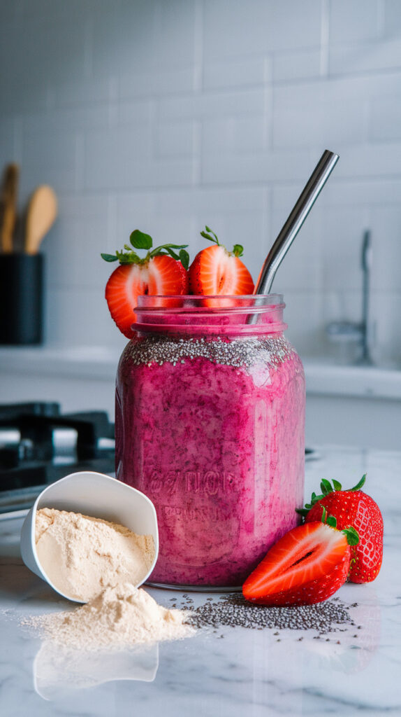 If your protein powder tastes strong, add extra strawberries to balance it out. Serve it with a boiled egg or a handful of nuts if you want a full meal that keeps you satisfied.