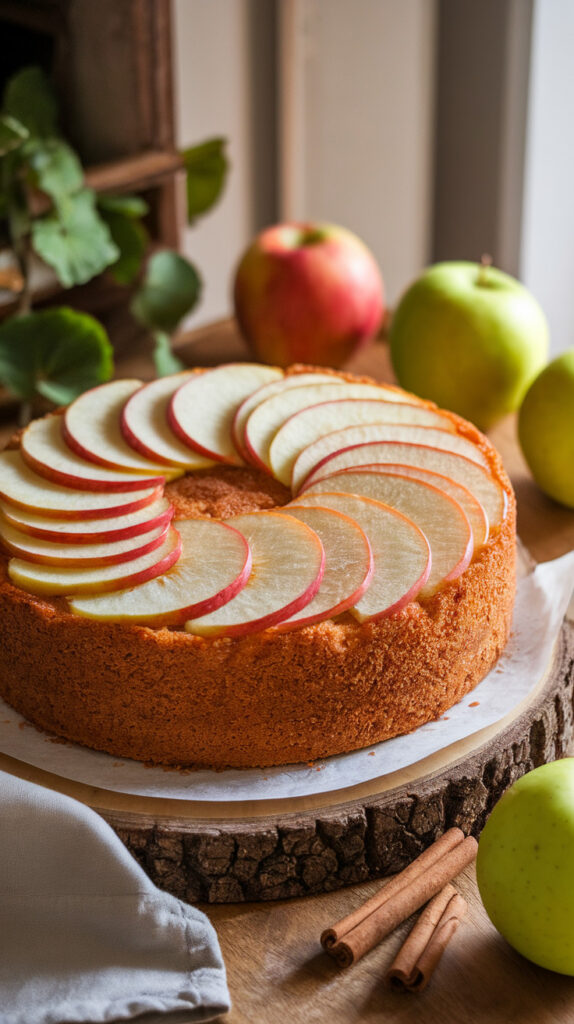 - Cool slightly before slicing so apples settle into the crumb.
