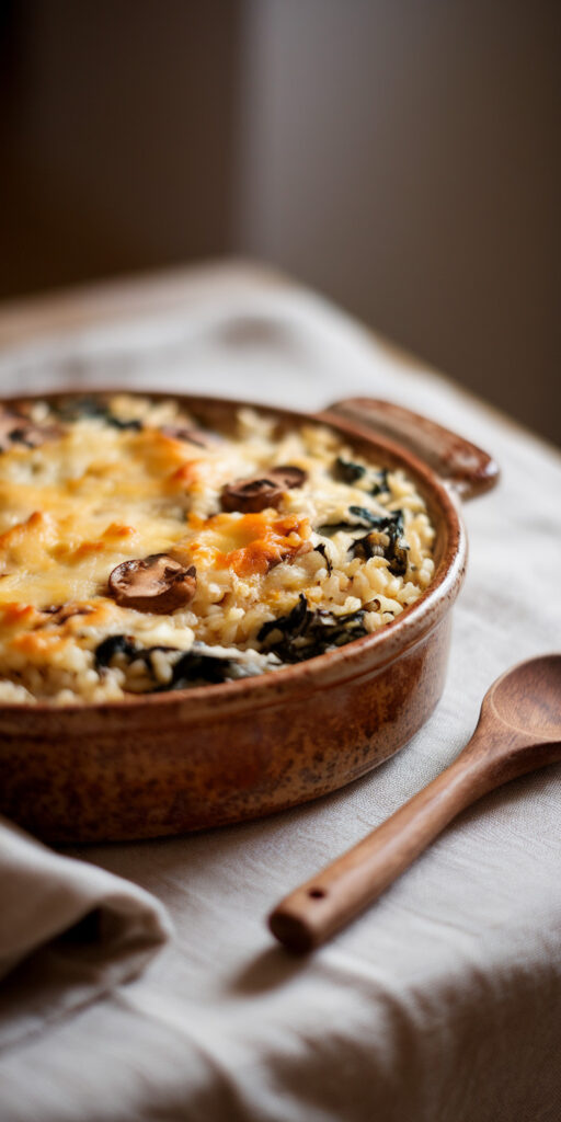 Some dinners fail because they feel heavy without actually being satisfying. This casserole fixes that by combining creamy texture with earthy depth from mushrooms and gentle freshness from spinach. It tastes indulgent but still feels balanced enough for a regular weekday meal.