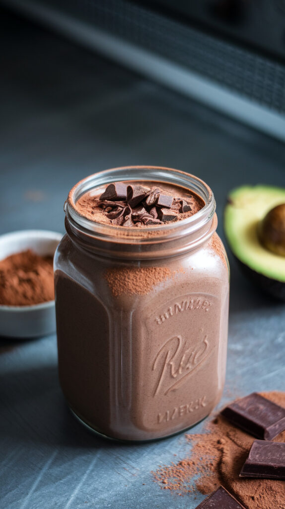 Avocado adds creaminess and healthy fats without a strong flavor. Cocoa powder covers any mild avocado taste and makes it feel indulgent. Oat milk adds smoothness and helps everything blend easily.