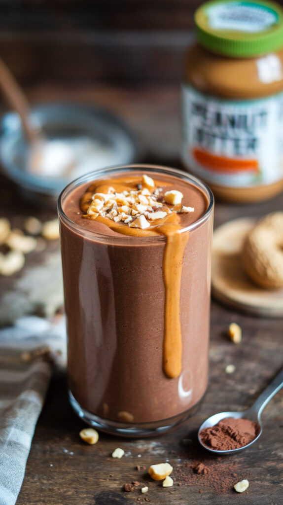 Bananas blend into a naturally creamy base, while cocoa powder gives deep chocolate flavor without needing chocolate syrup. Peanut butter thickens the smoothie and adds richness. The combination tastes indulgent but still feels balanced.
