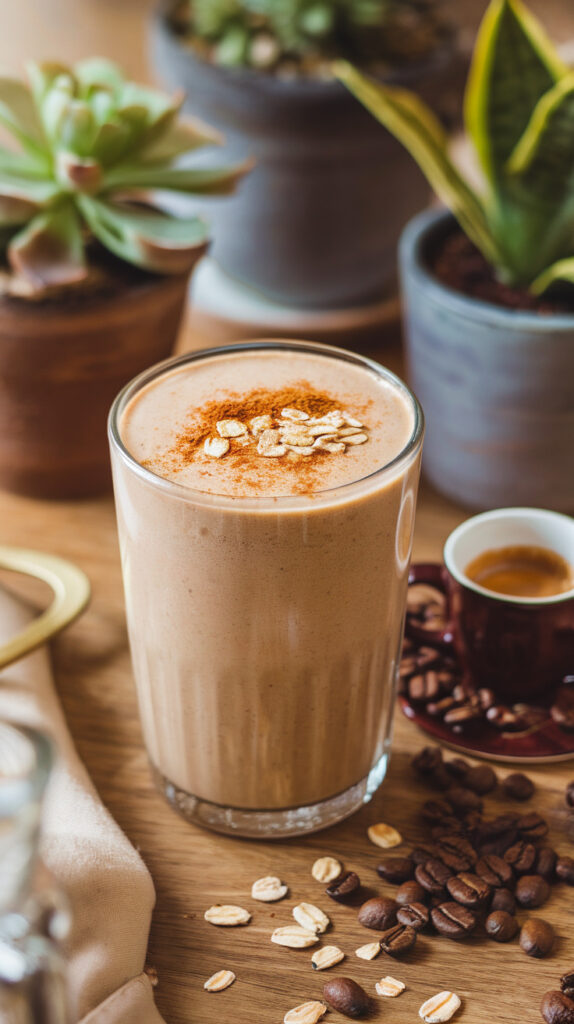 Coffee adds bold flavor and caffeine, while banana and oats give it a creamy, filling texture. Oat milk blends smoothly with coffee and gives it a naturally sweet taste. The combo tastes like a coffee milkshake without needing dairy.
