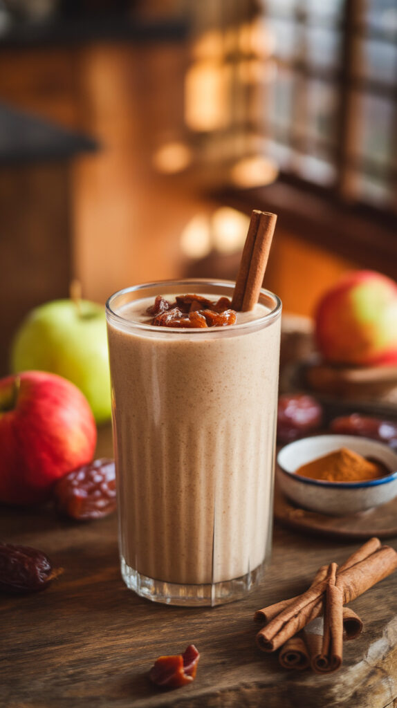 Apple smoothies don’t always work because apples can turn grainy when blended. This recipe avoids that issue by using apple sauce or soft apple slices and pairing them with dates. The flavor tastes like apple pie filling, but healthier.