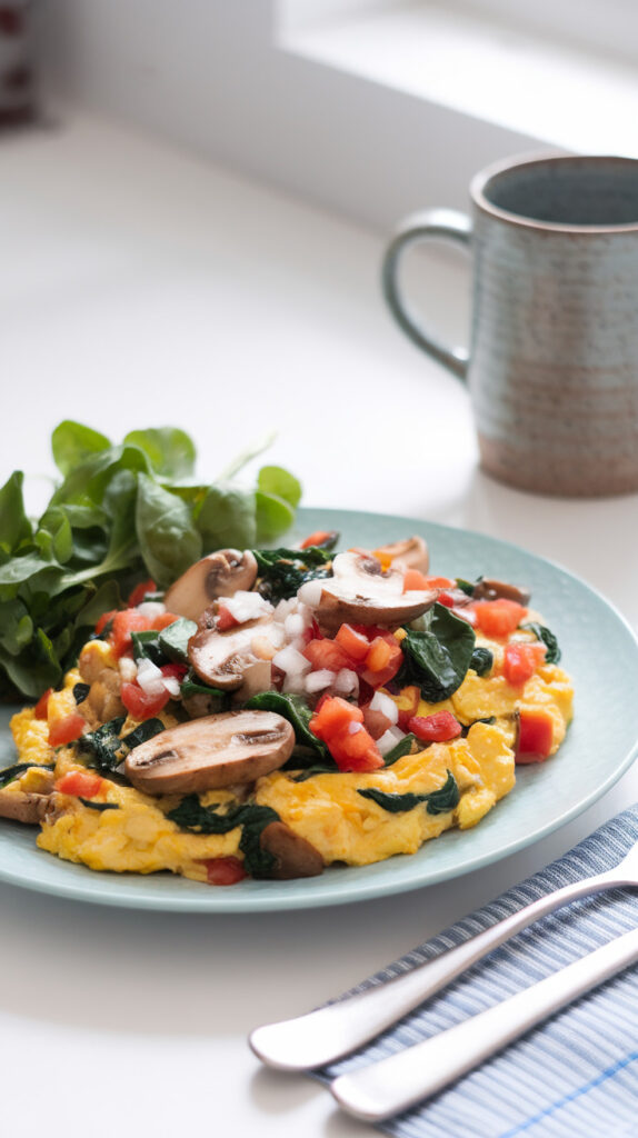 Breakfast doesn’t need bacon to be satisfying. This scramble is fast, packed with protein, and keeps you full without feeling heavy. Mushrooms add that savory flavor that makes it taste more indulgent than it actually is. I used to hate egg whites because they felt bland, but the trick is loading them up with veggies and seasoning.