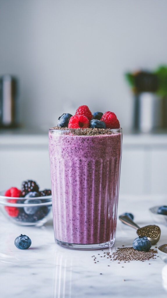 Berries are basically smoothie magic because they taste sweet but don’t overload you with sugar. This smoothie works so well because the chia seeds expand and thicken everything, which makes it more filling without adding heaviness. It also has that refreshing berry tang that makes it feel like a treat. If you want a smoothie that feels clean but still tastes exciting, this is it.