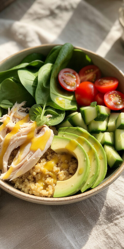 Cravings for something filling usually lead to heavy carbs or takeout. This bowl keeps things balanced without feeling like diet food. The combination of lean chicken, fluffy quinoa, and fresh vegetables hits that sweet spot between satisfying and clean.