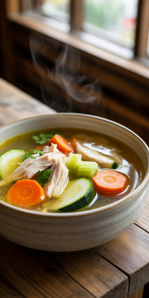 When meals feel too heavy, soup resets everything. This one uses shredded chicken and loads of vegetables for a clean, comforting bowl. It’s simple but not boring.