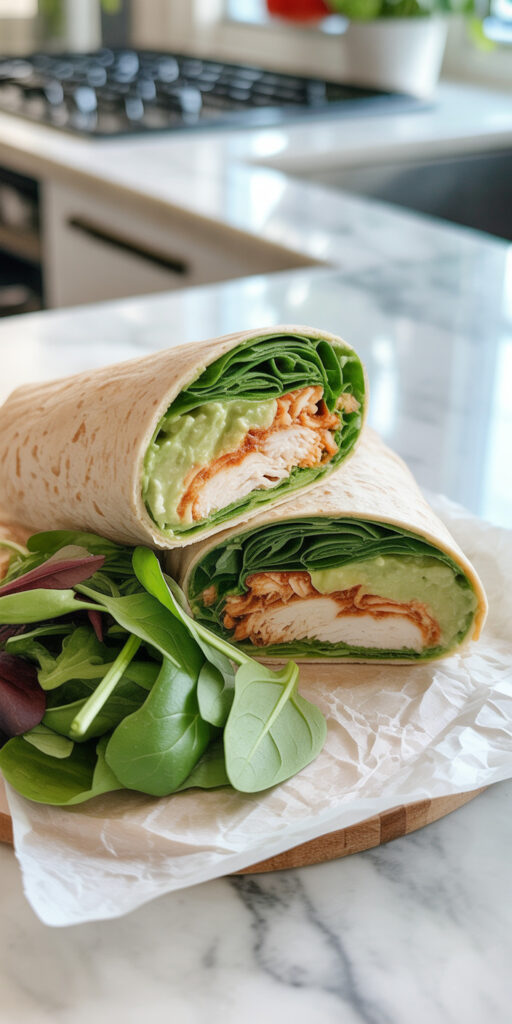 Lunch often needs to be portable and quick. This wrap checks both boxes without sacrificing nutrition. It’s creamy, fresh, and high in protein.
