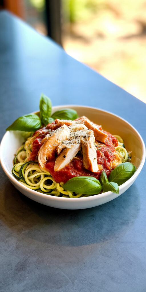Pasta cravings are real, but zucchini noodles lighten things up. Pairing them with shredded chicken keeps protein high. The texture stays satisfying when cooked properly.