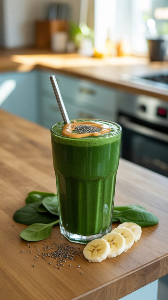 The easiest way to get more iron is to stop overthinking it and just throw spinach into a smoothie that already tastes amazing. That’s exactly what this one does. The banana keeps it sweet, peanut butter makes it creamy, and spinach quietly does its job without ruining the vibe.
