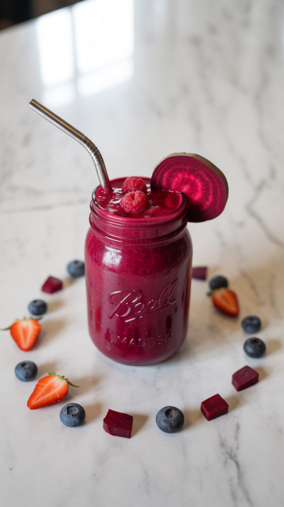 It’s sweet, tangy, and doesn’t taste “healthy” in a weird way. The beet gives it a unique richness that makes it feel more satisfying than a basic berry smoothie.
