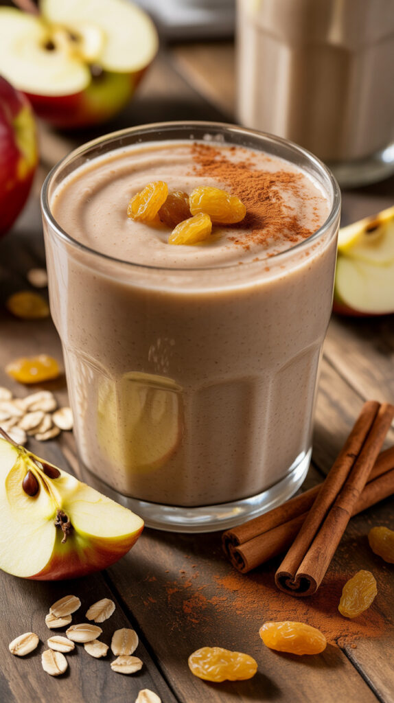 This smoothie tastes like something you’d eat in the fall, but honestly it works all year. Apples bring freshness, raisins add natural sweetness, and cinnamon makes it feel cozy without being too heavy. It’s like an oatmeal cookie turned into a drink.