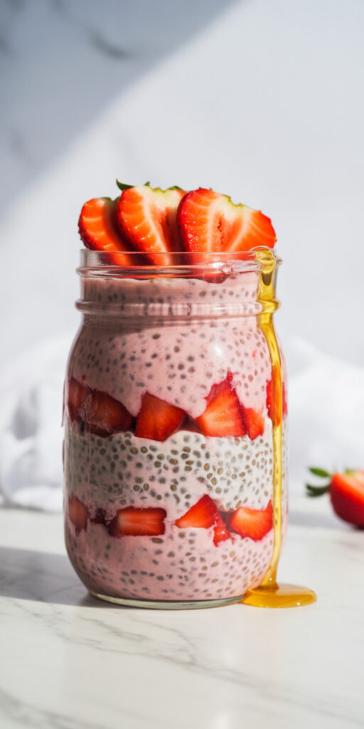 Chia pudding sounds like something that should be boring, but it really doesn’t have to be. When done right, it turns into a creamy, slightly textured dessert that feels surprisingly satisfying. The strawberries add freshness that keeps it from tasting too heavy.