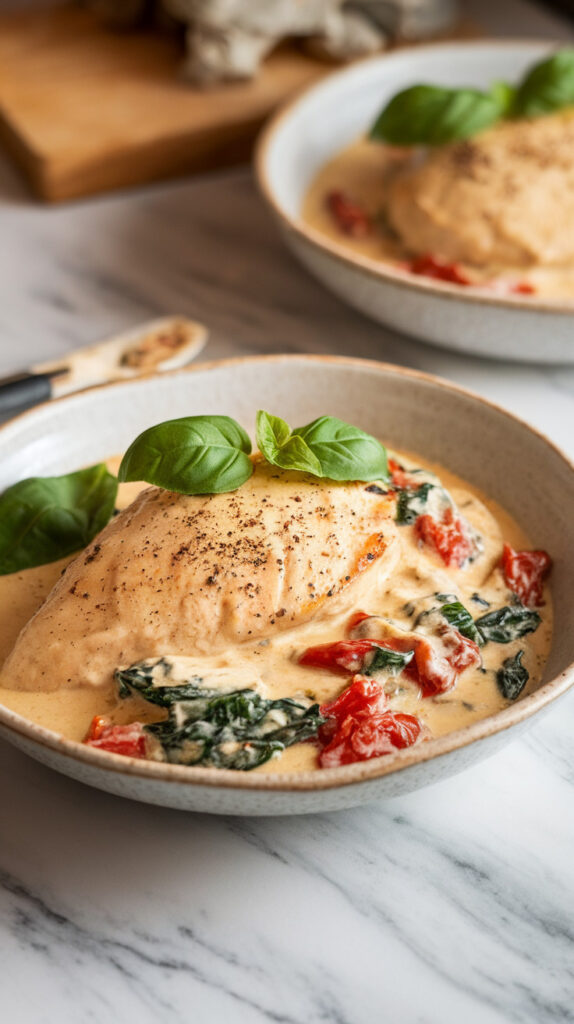 I’m obsessed with how the sun-dried tomatoes and garlic make the sauce taste deeper than you’d expect from a slow cooker recipe. It’s creamy, but not boring creamy. And when you spoon that sauce over chicken, it’s honestly hard to stop eating.
