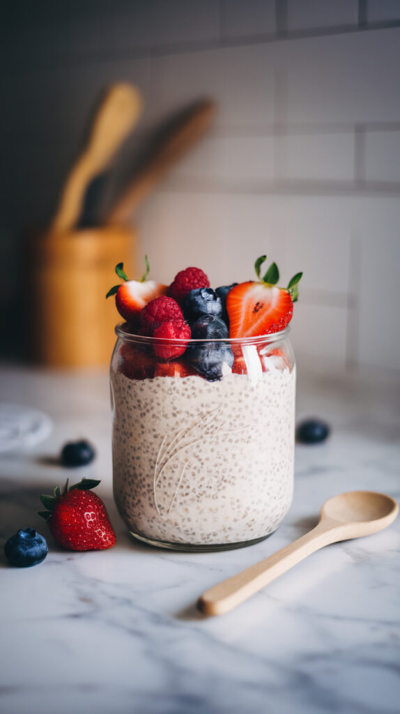 This version leans on chia seeds and berries, which isn’t just trendy wellness stuff—it actually makes the oats thicker, more filling, and way more satisfying. I’ve made this when I needed something grab-and-go, and it saved me from making a terrible “drive-thru decision.”