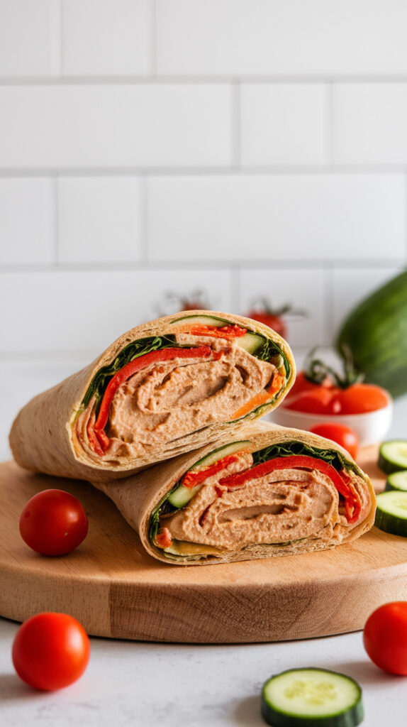 Hummus works ridiculously well as a creamy base, and it makes the wrap feel hearty without needing mayo or cheese. I started making this when I got tired of “sweet breakfasts” and wanted something savory that still felt light.