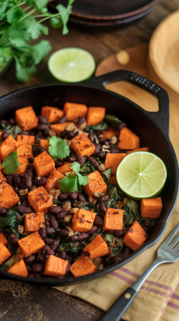 7. Savory Sweet Potato Hash with Black Beans and Spinach