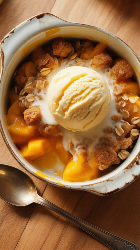 Fruit crumbles work well because they combine warm fruit with buttery topping. Mango crumble brings that same comfort but adds bright tropical flavor.