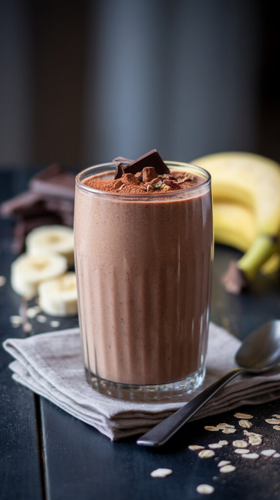 Chocolate smoothies can go wrong fast if they taste like protein powder and sadness. This one doesn’t, because it uses cocoa powder and banana for real flavor, plus oats for thickness. It ends up tasting like a creamy chocolate shake that somehow counts as breakfast.