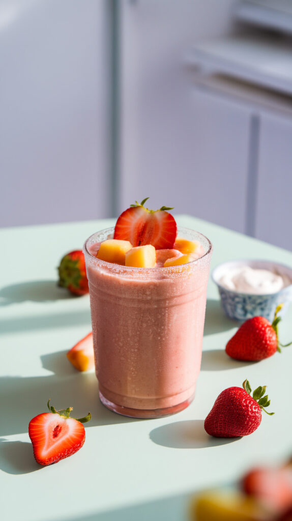 This one is great when you want something fruity but not boring. I also like it because it has that pretty pink-orange color that looks way more impressive than the effort you put in. If you’re making smoothies for guests, this is an easy win.