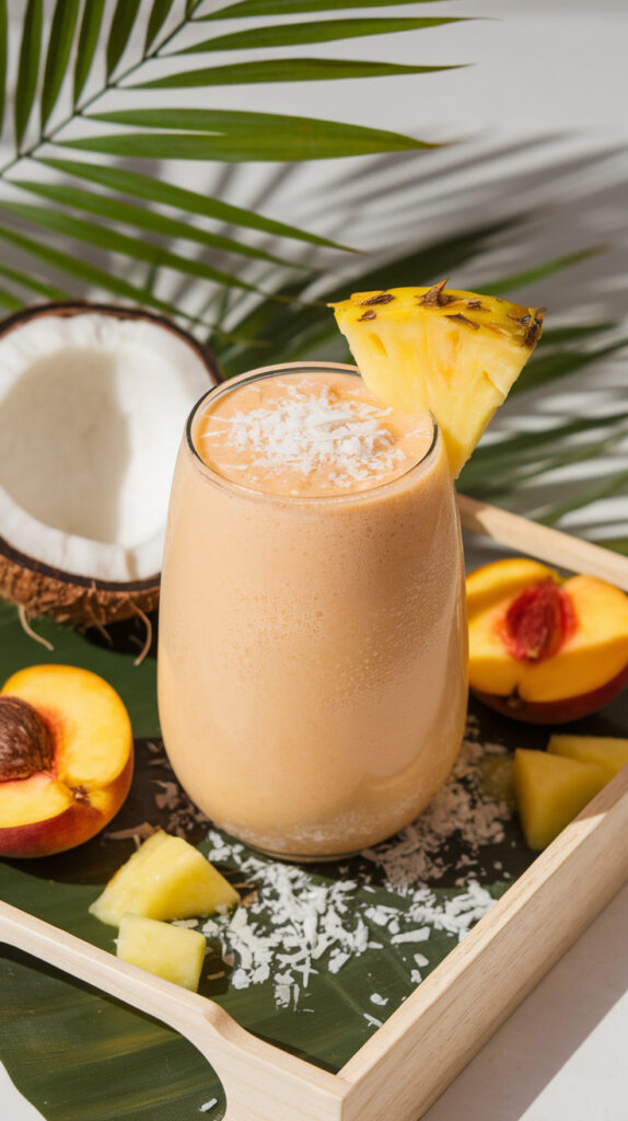 This smoothie is what you make when you want something smooth, creamy, and slightly fancy without doing anything complicated. Coconut and peach together taste like a tropical dessert, but it still feels light and refreshing. It’s the kind of smoothie that makes you feel like you have your life together.