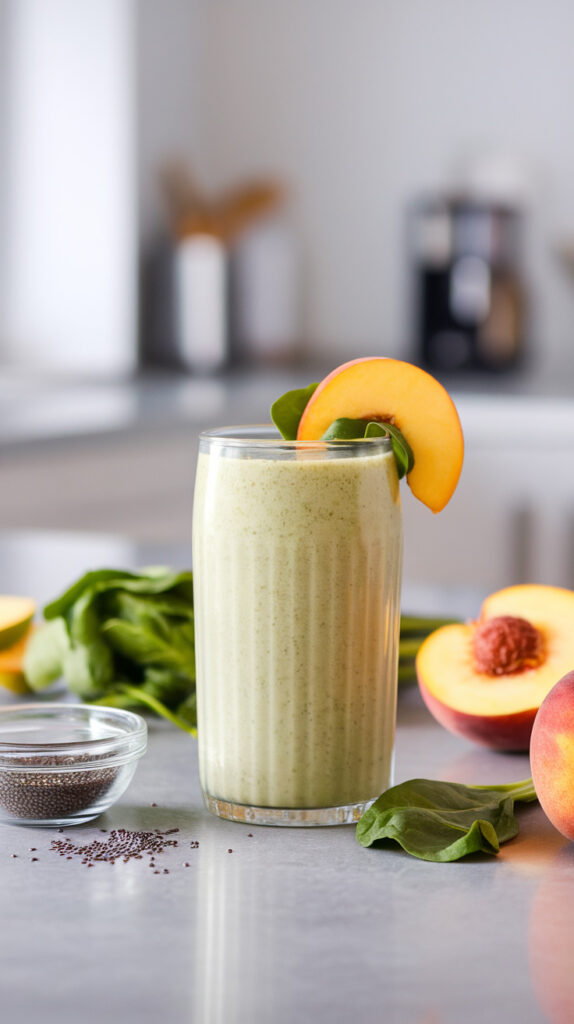 I love making this when I want something lighter but still nutritious. The banana and peaches create that creamy texture, while spinach quietly does its job in the background. It’s basically the smoothie version of sneaking veggies into mac and cheese.