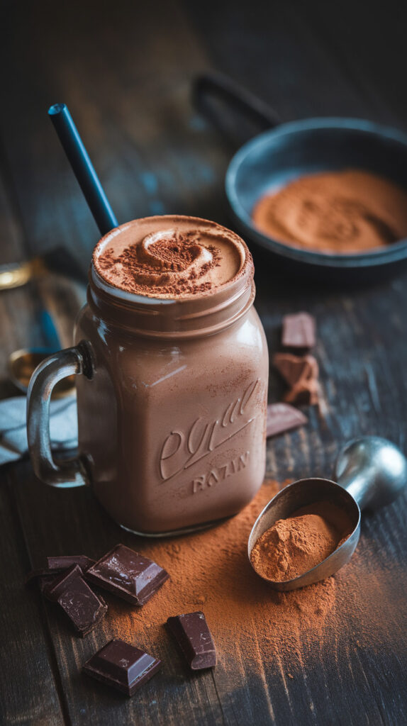 This one works because cocoa powder gives that deep chocolate flavor without needing a bunch of sugar. Peanut butter makes it creamy and gives it a richer taste than most protein smoothies. I also like it because it doesn’t taste like you’re drinking a gym supplement, which is honestly the biggest problem with most protein shakes.