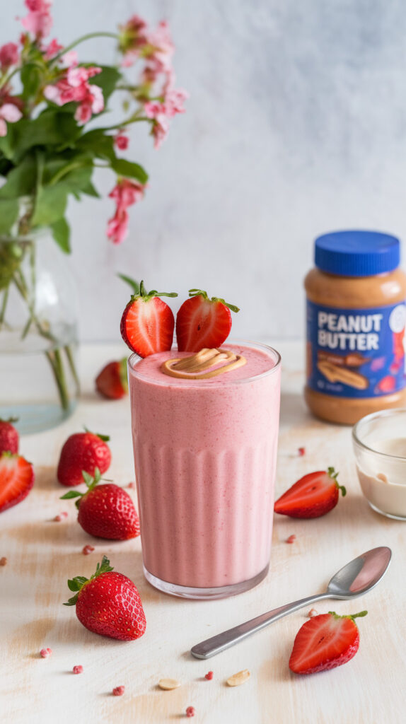 What makes this recipe work is the balance between strawberries and peanut butter. Strawberries bring brightness and natural sweetness, while peanut butter adds richness so it doesn’t taste like watered-down fruit. I also like adding yogurt here because it makes the smoothie taste like strawberry cheesecake in the best possible way.