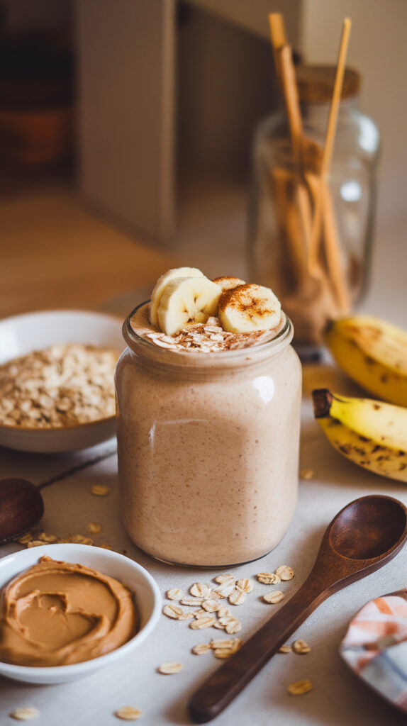 The oats are the secret weapon here because they add fiber and make everything feel more substantial. Peanut butter gives it flavor and richness, and the banana makes it naturally sweet. I like this smoothie because it keeps you full for a long time, and it’s perfect for busy mornings when you don’t want to cook.