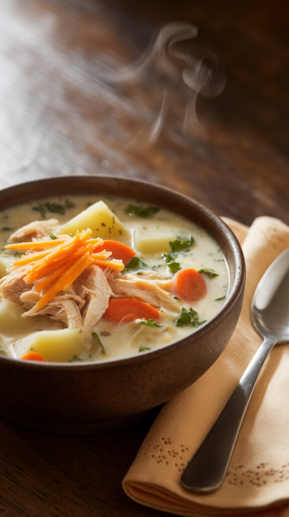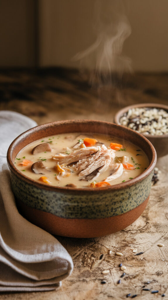 Wild rice adds texture and a subtle nutty flavor that regular white rice just can’t match. When you fold in shredded rotisserie chicken, the soup turns hearty without becoming too rich. I like this one when I want something that feels slightly elevated without extra effort.